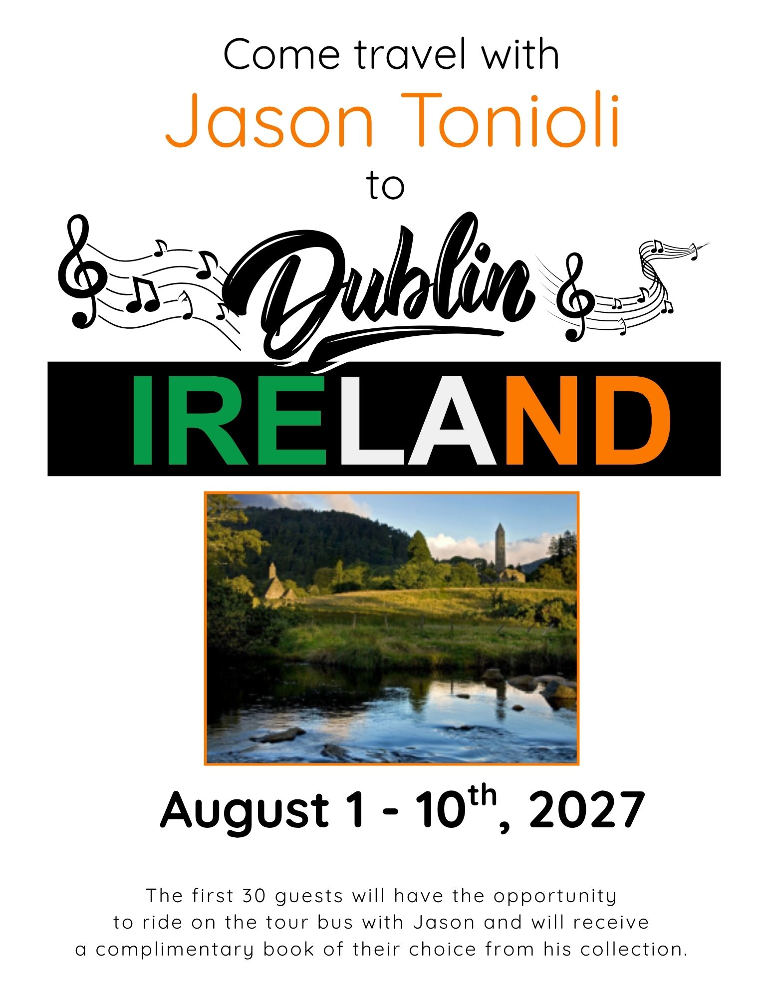 The first 30 deposits will have a seat on the same bus as Jason and receive a free book from his collection. We recommend reserving your spot by July 1, 2026 to guarantee your seat(s).